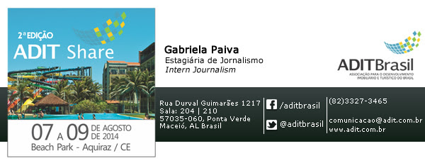 O ADIT Share é considerado o principal evento nacional sobre empreendimentos de Tempo Compartilhado (Timeshare e Fractional), que neste ano vai para sua segunda edição. A ADIT Brasil – Associação para o Desenvolvimento Imobiliário e Turístico do Brasil – promoverá a 2ª edição do ADIT Share entre os dias 07 e 09 de agosto, no Ceará, tendo o Beach Park como local escolhido para o evento.