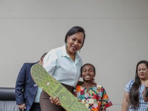 Um dos momentos marcantes foi a homenagem do campeão de skate Arthur Aguilar, que entregou à deputada um shape (prancha de skate) em reconhecimento ao apoio recebido.